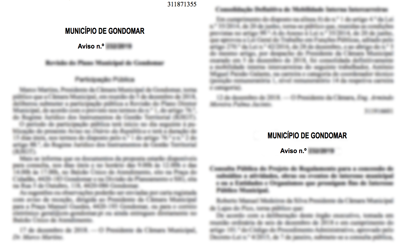 2022.11.21 – Aviso DR – Projeto de Regulamento Municipal de Organização e Funcionamento da Polícia Municipal de Gondomar
