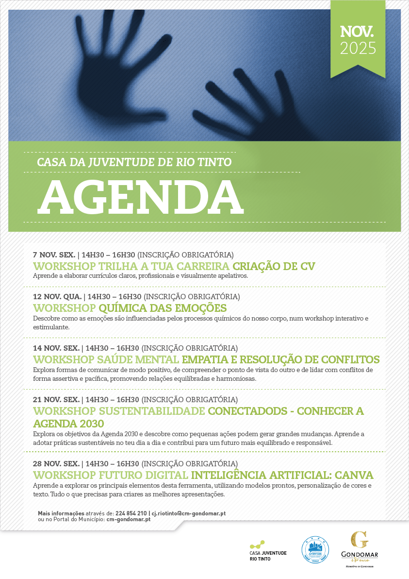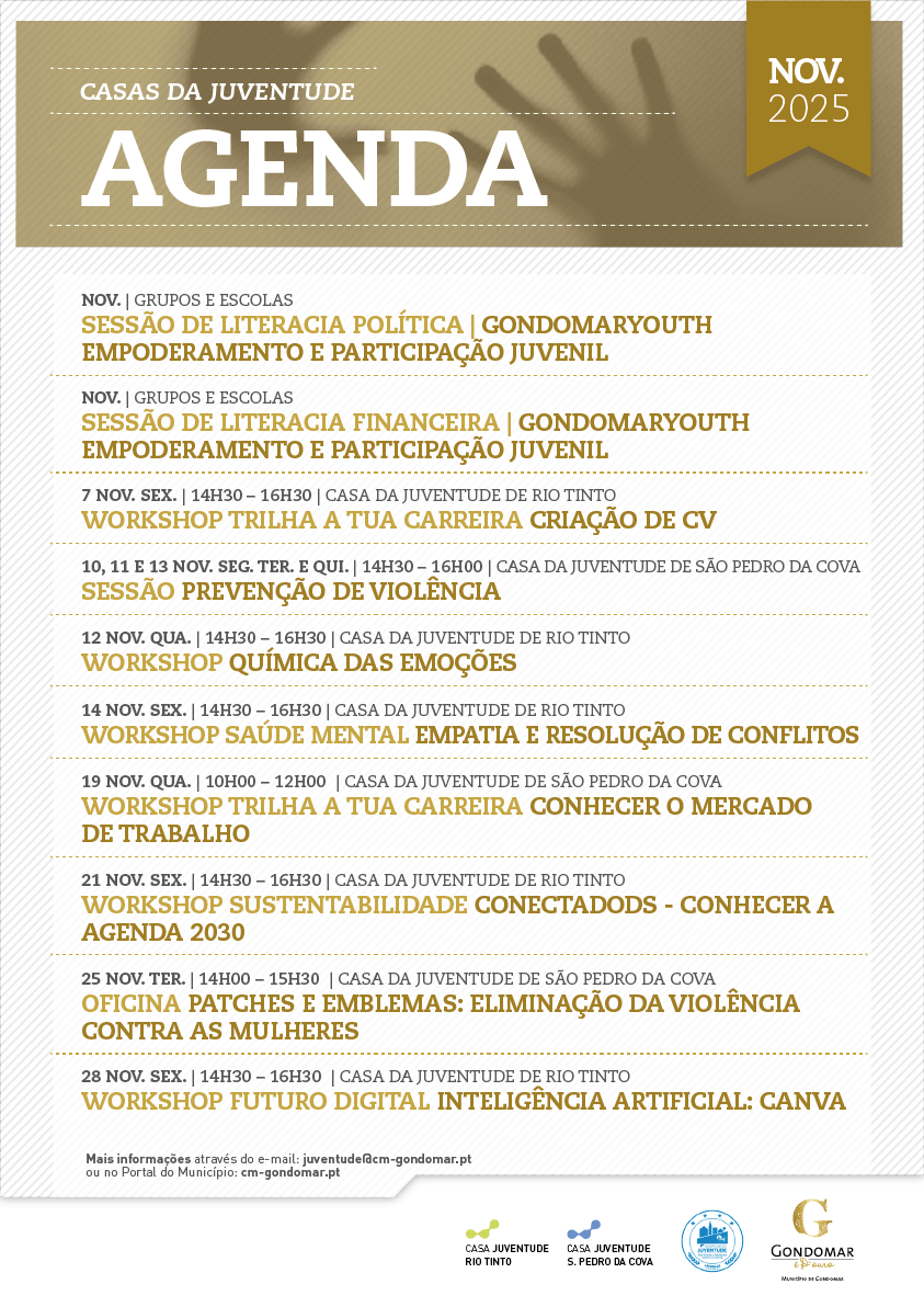 Está disponível para consulta a programação das atividades nas Casas da Juventude de Rio Tinto e de São Pedro da Cova para o mês de novembro de 2025.