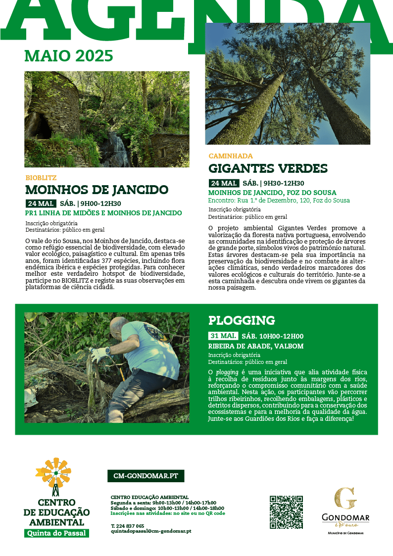 O Centro de Educação Ambiental da Quinta do Passal dinamiza diversas atividades ao longo do mês de maio de 2025.