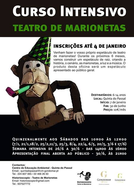 A Câmara Municipal de Gondomar, em parceria com a companhia de Teatro Historioscopio, promoverão em 2017 uma oficina quinzenal de Teatro de Marionetas, destinada aos jovens entre os 6 e os 14 anos, permitindo ensinar aos participantes a arte de construir um espetáculo de raiz, criando a história, o cenário, as marionetas, a luz e a música. O produto desta oficina será um espetáculo apresentado ao público geral.