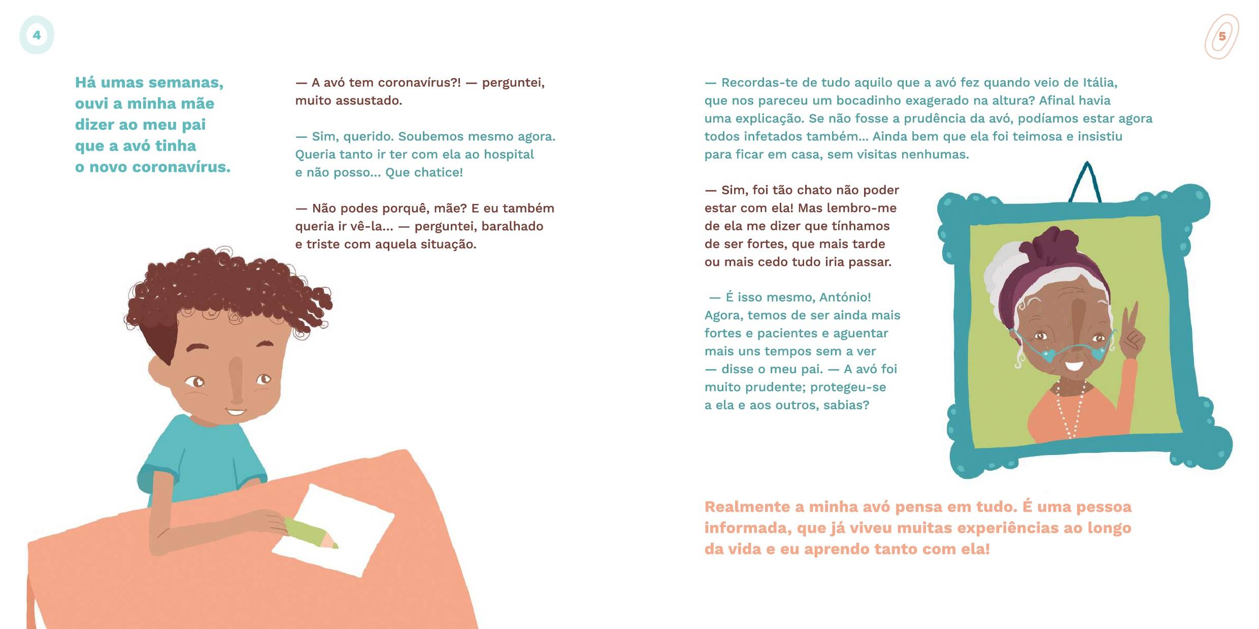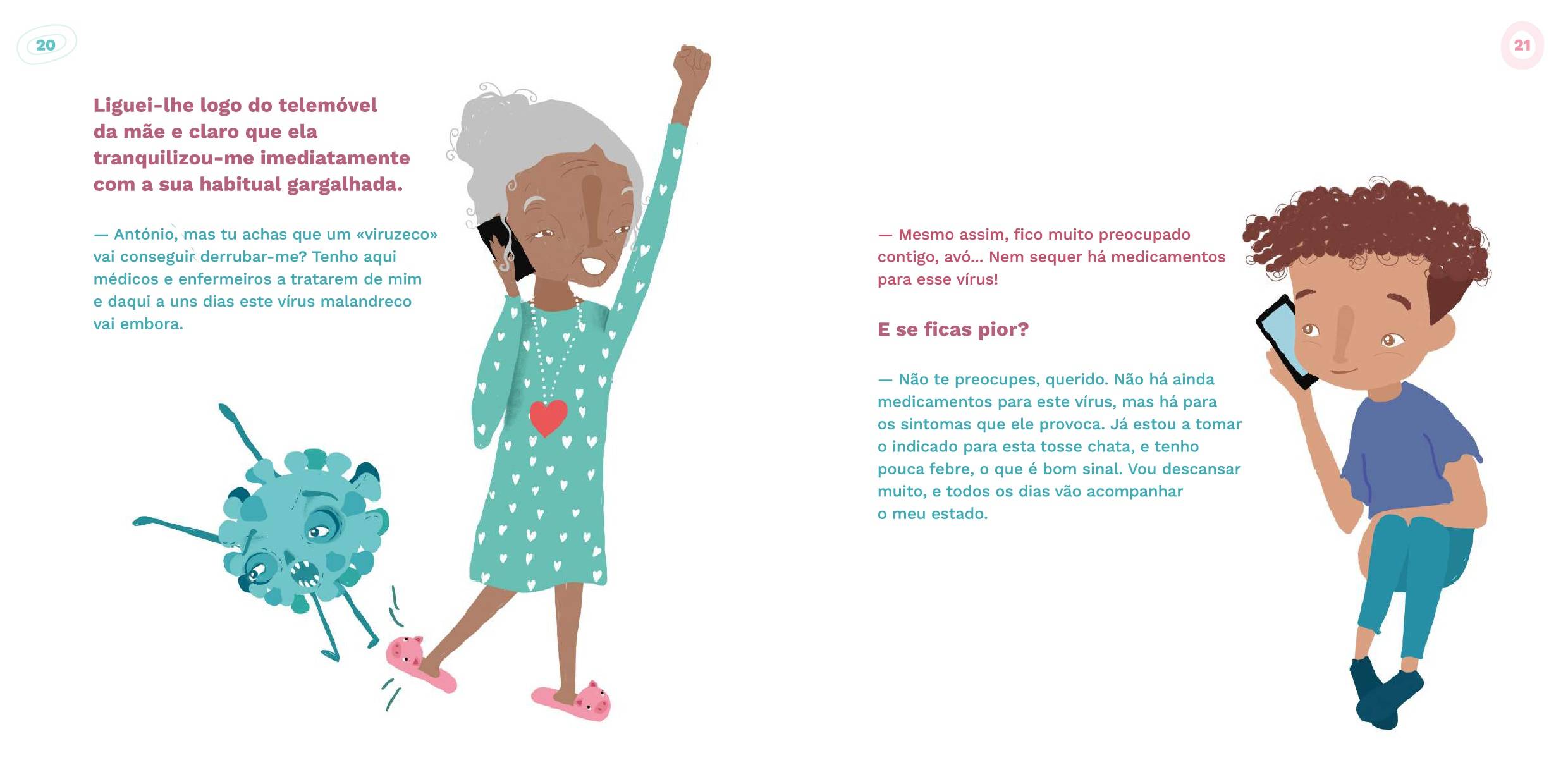 «A Minha Avó Tem Coronavírus!» é uma história contada pelo António, um menino que percebe que a sua avó ficou infetada pelo novo coronavírus depois de ter voltado de uma viagem. Como será que ele e a família lidam com a situação? Como se sente a avó? O que é que o António e os seus pais podem fazer para apoiarem a avó e manterem-se protegidos?