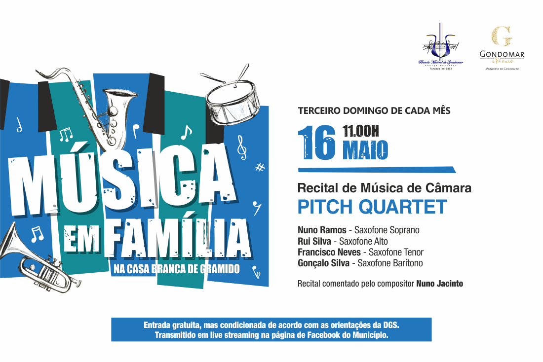 O Município de Gondomar, em parceria com a Banda Musical de Gondomar, organiza mais um Recital de Música de Câmara do ciclo “MÚSICA EM FAMÍLIA” que, com uma periodicidade mensal, promete tornar a manhã do terceiro domingo de cada mês leve, alegre e reconfortante, sempre com a beleza do rio Douro como pano de fundo e a Casa Branca de Gramido como mestre-de-cerimónias.