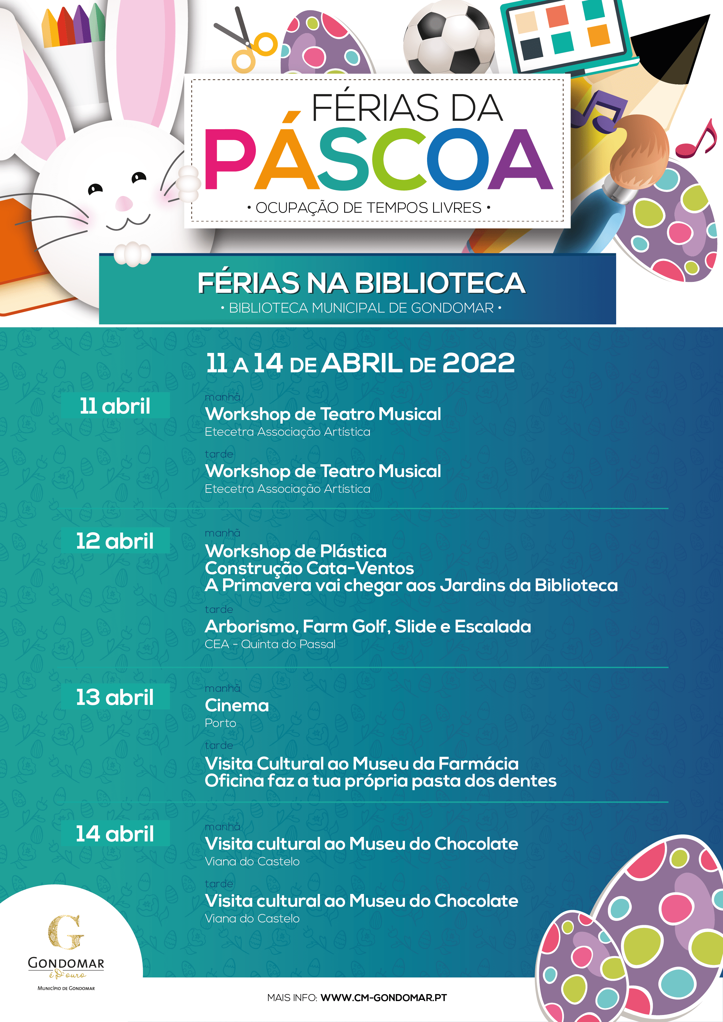 A Biblioteca Municipal de Gondomar recebe o programa Ocupação de Tempos Livres – Férias da Páscoa 2022.