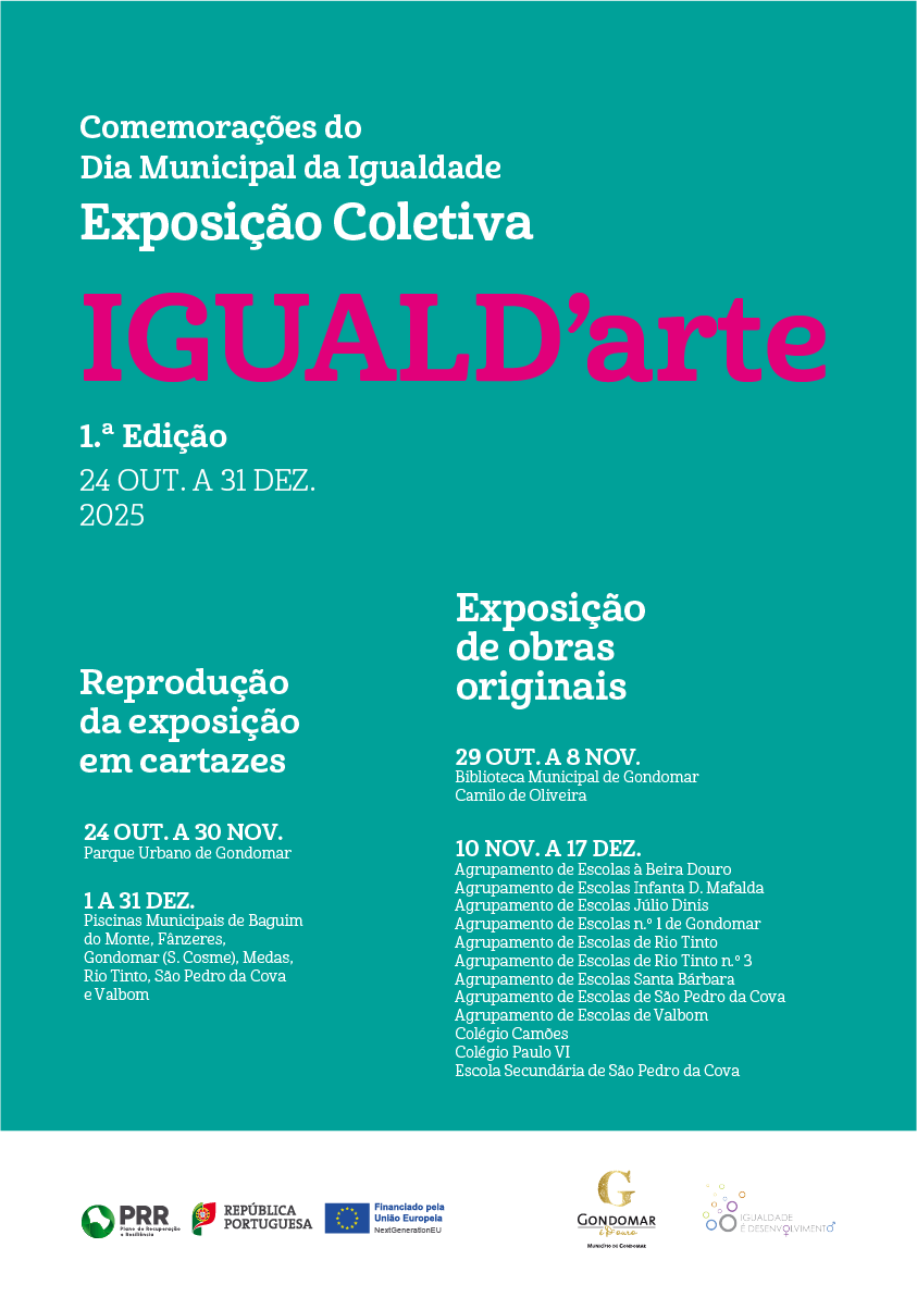 A exposição IGUALD’arte integra a operação “Gondomar Inclui”, sendo financiada pelo PRR – Plano de Recuperação e Resiliência, no âmbito da Operação Integrada em Comunidades Desfavorecidas da Área Metropolitana do Porto.