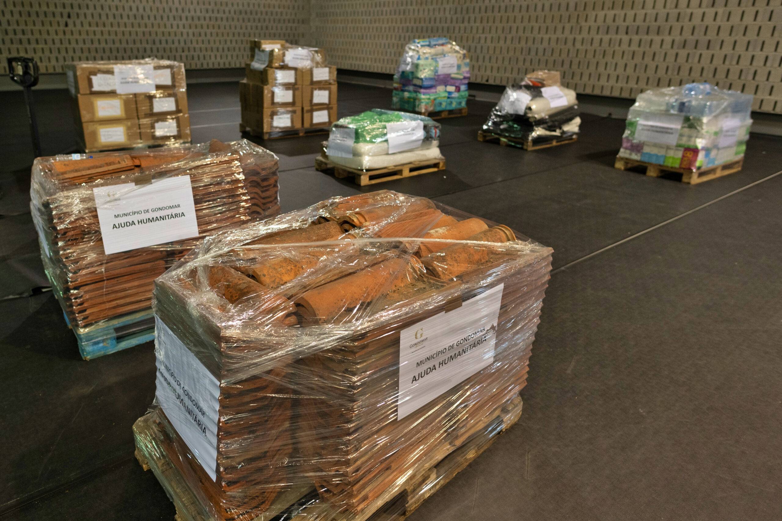 Entre os bens recolhidos incluem-se produtos de construção, designadamente telhas, bem como água e leite, bens alimentares não perecíveis, produtos de higiene para adultos e crianças, incluindo fraldas, mantas e cobertores, e bens alimentares destinados a animais.