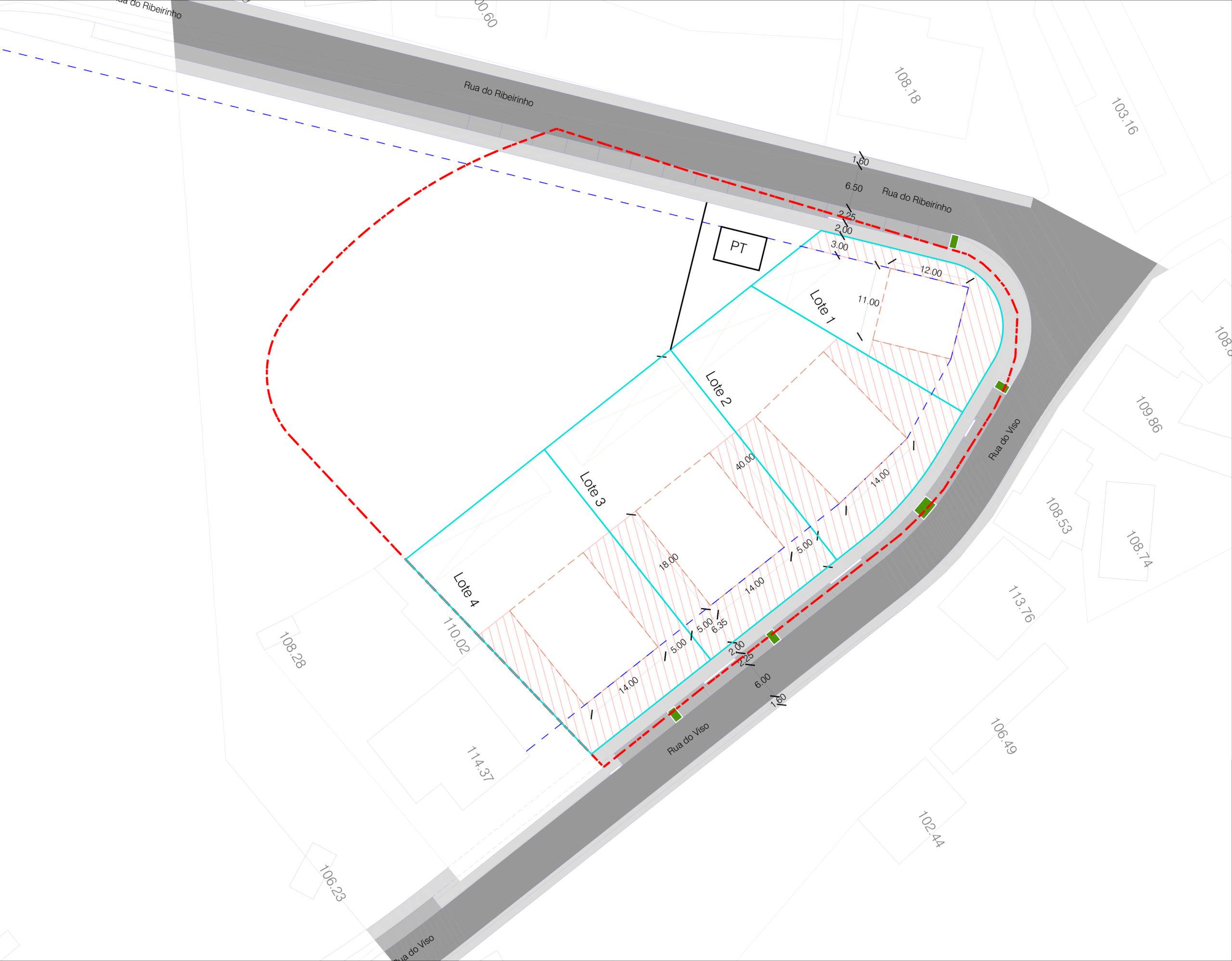 | N.º do lote | Área do lote (m2) | Área de implantação (m2) |